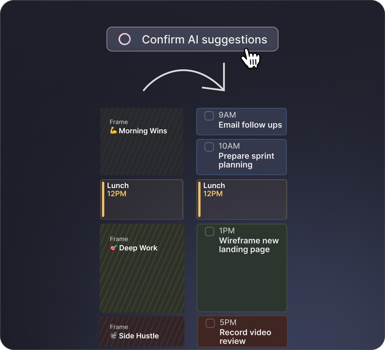 Note: The AI Planner only makes suggestions; you still need to approve them for Morgen to schedule them.