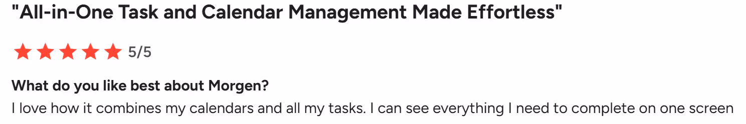 "Morgen Solves the Task & Calendar Workflow I need in my busy life," shares Nicholas Alico.
