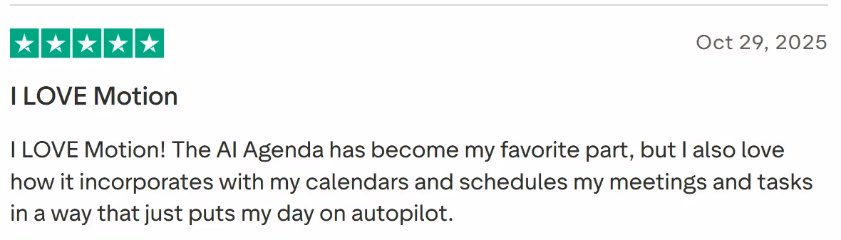 - Full AI assistant suite: Motion includes AI Meeting Notetaker, AI Docs Assistant, AI Chat, and AI Project Manager that work together beyond basic calendar optimization