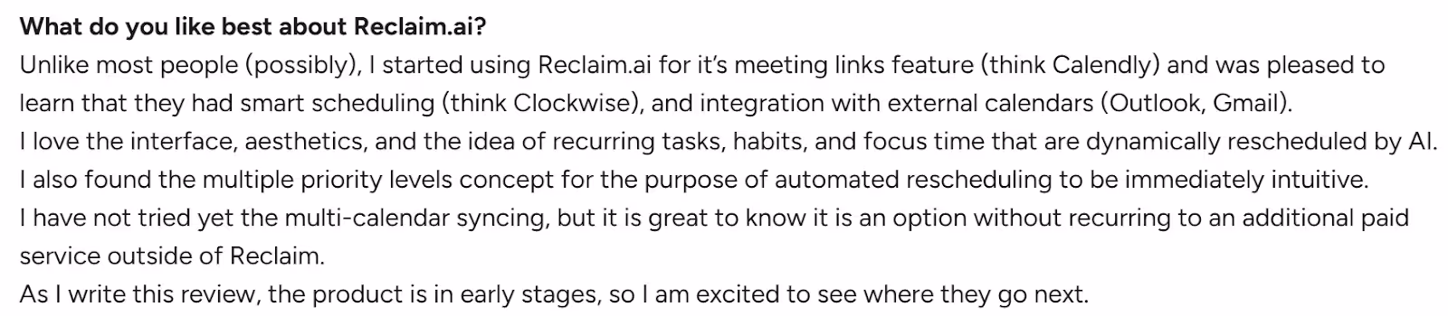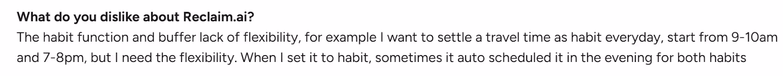 - No native mobile app: Multiple users wish for a mobile app, as you can only use Reclaim on a desktop currently
