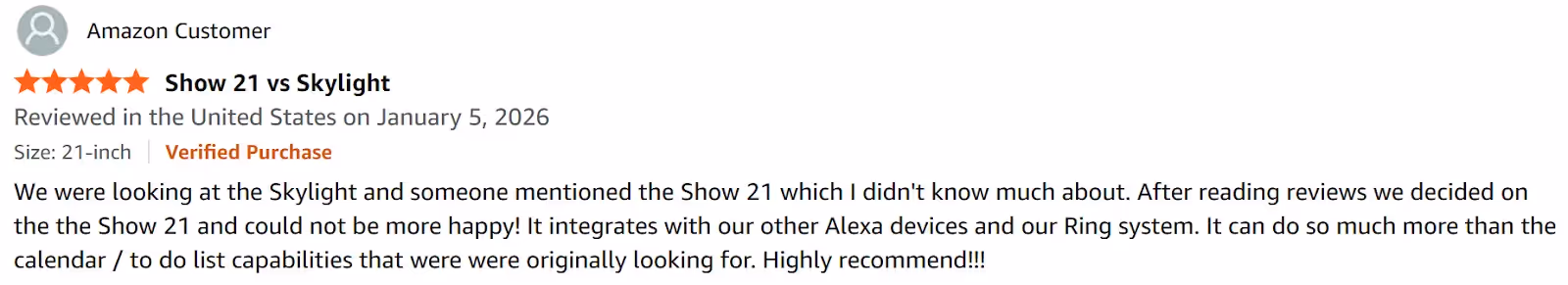 - Families using Alexa and smart home devices: Households who want voice-controlled calendar viewing alongside smart home control and kitchen functionality in one wall-mounted display