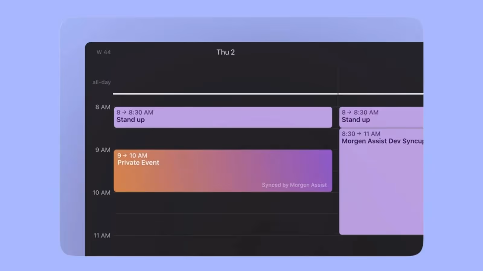 → Morgen: For busy parents who need unified planning across work, personal, and shared family calendars. It layers on top of Google, Outlook, Fastmail, and iCloud to help you plan realistically