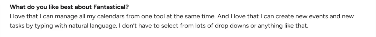 "I love that I can manage all my calendars from one tool at the same time," shares Kelly W.