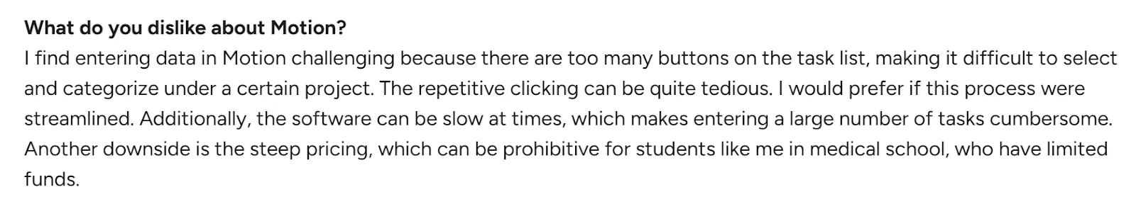 "I find entering data in Motion challenging because there are too many buttons on the task list," says Harrison G.