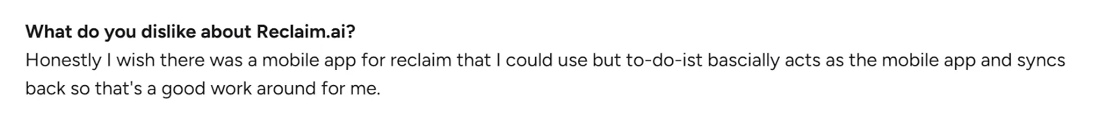 "Honestly, I wish there was a mobile app for Reclaim," says Christian A.