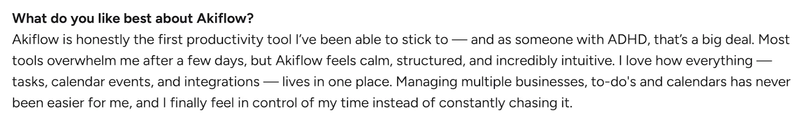 "Akiflow is honestly the first productivity tool I’ve been able to stick to," shares Lucie on G2.