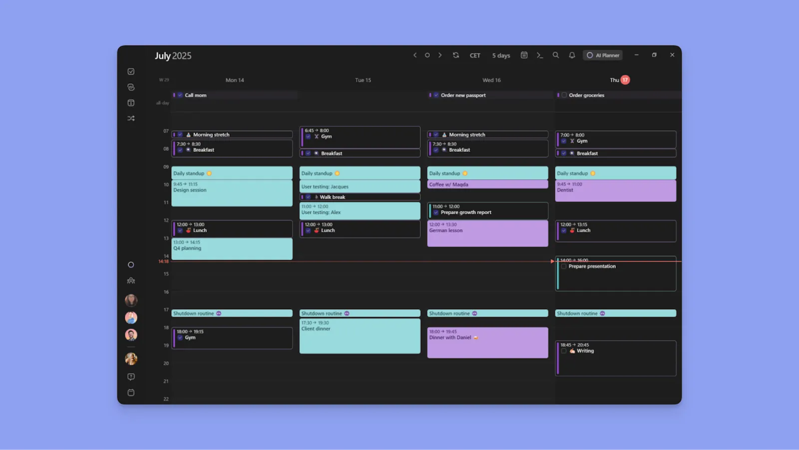 Morgen helps you structure routines, adjust plans as priorities change, and use AI-assisted conflict resolution while keeping complete control over your schedule. Here are some features you'll love: