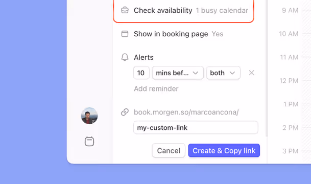 To make that possible, Morgen needs to check your availability in real-time, only showing others times they can meet with you that are 'free' in your calendar.
